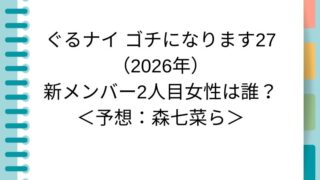 ぐるナイ ゴチになります27・第1戦は2026年1月15日に放送(ぐるナイ夜7時からのSP)。 今回は新年の第1戦です。ゲストは出川哲朗さん、北村一輝さんの2人。 そして新メンバー2人の発表もあります。 (追記:2026年1月15日は新メン...