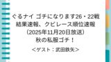 ゴチになります26(2025年)第16戦の結果速報