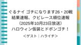 ぐるナイ ゴチになります25・21戦は2024年11月7日に放送(ぐるナイ19時から)。その結果発表速報・順位速報(2024年)をまとめます。