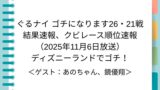 ぐるナイ ゴチになります26・第2戦は2025年1月30日に放送(ぐるナイ20時からの放送です)。その結果発表速報・順位速報(2025年)をまとめます。